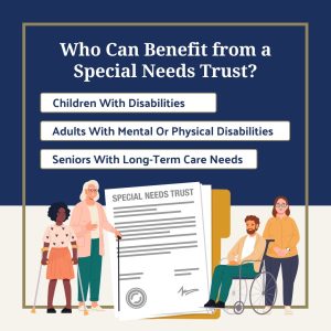Older adults who may need long-term care or who already rely on Medicaid for services can also benefit from a special needs trust. This is especially useful for seniors who receive an inheritance or sell a home and want to avoid becoming ineligible for government help. An SNT can help protect those assets, ensuring the funds are used wisely while maintaining access to health care and support programs.